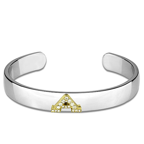 Reverse Two-Tone White Metal Bangle with Top Grade Crystal in Clear