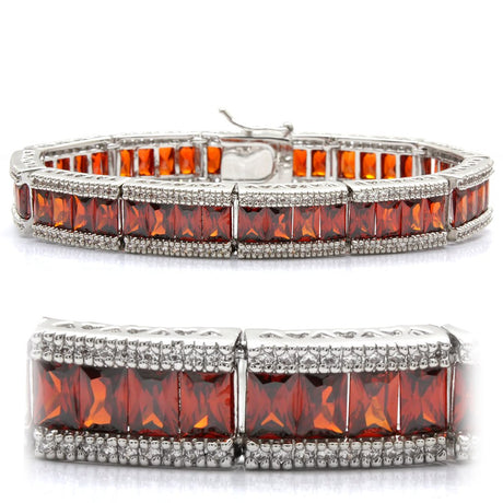 Rhodium Brass Bracelet with AAA Grade CZ in Garnet