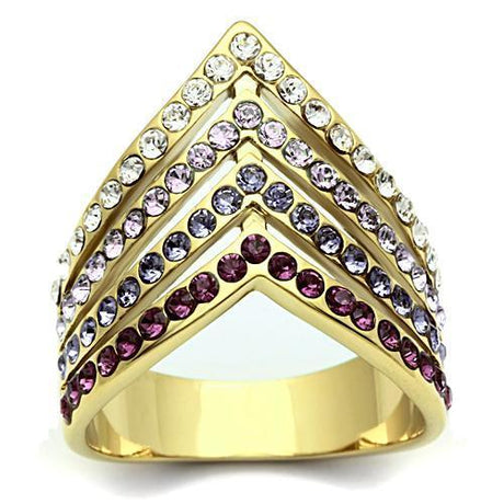 IP Gold(Ion Plating) Brass Ring with Top Grade Crystal in Clear