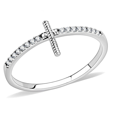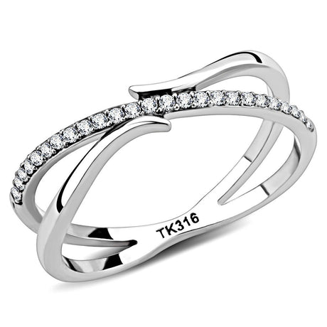 High polished (no plating) Stainless Steel Ring with AAA Grade CZ in Clear