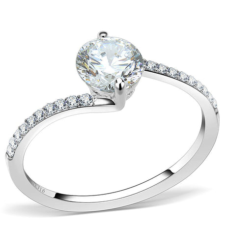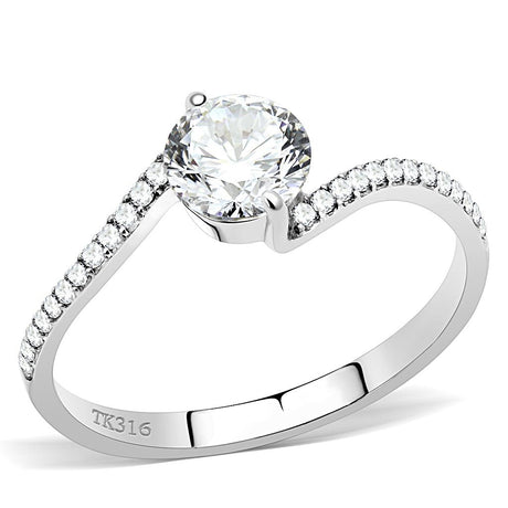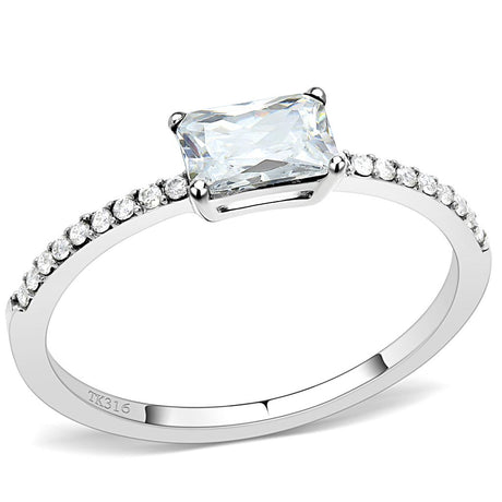 High polished (no plating) Stainless Steel Ring with AAA Grade CZ in Clear