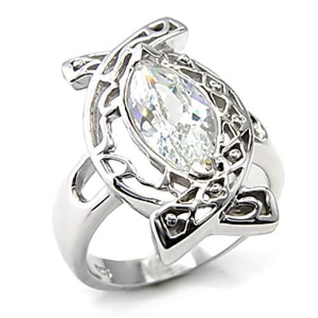 Rhodium 925 Sterling Silver Ring with AAA Grade CZ in Clear
