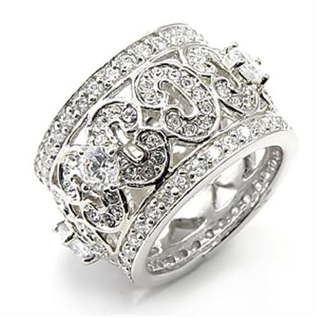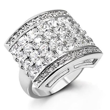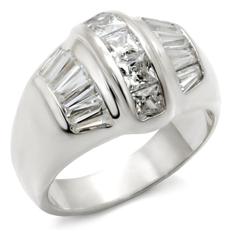 Rhodium 925 Sterling Silver Ring with AAA Grade CZ in Clear