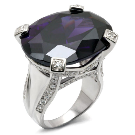 High-Polished 925 Sterling Silver Ring with AAA Grade CZ in Amethyst
