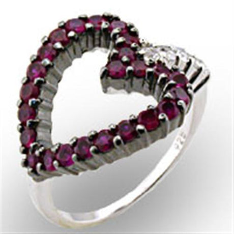 Rhodium + Ruthenium 925 Sterling Silver Ring with Synthetic Garnet in Ruby