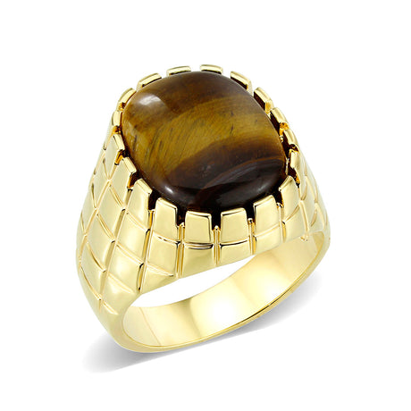 IP Gold(Ion Plating )Brass Ring with Tiger Eye