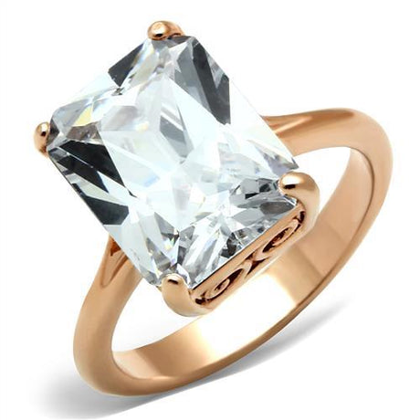 IP Rose Gold(Ion Plating) Stainless Steel Ring with AAA Grade CZ in Clear