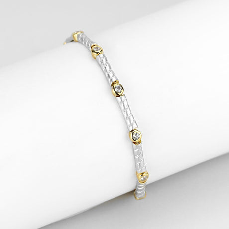 $15.30Unit price /UnavailableGold+Rhodium Brass Bracelet with AAA Grade CZ in Clear