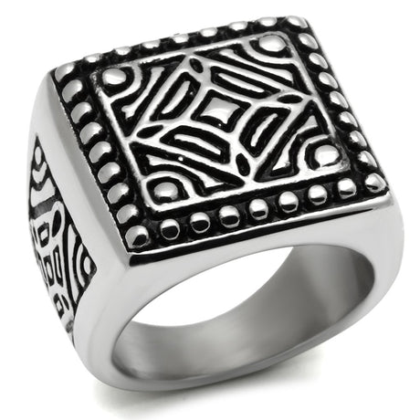 High polished (no plating) Stainless Steel Ring with Synthetic Synthetic Glass in Montana