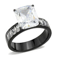 IP Black (Ion Plating) Stainless Steel Ring with AAA Grade CZ in Clear