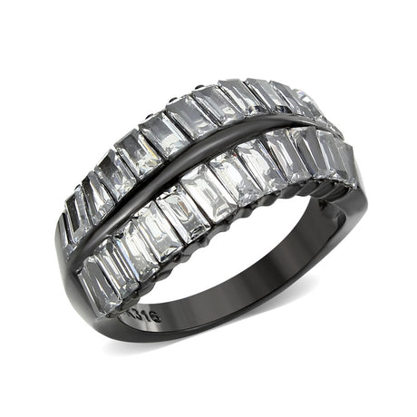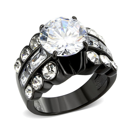 IP Black (Ion Plating) Stainless Steel Ring with AAA Grade CZ in Clear