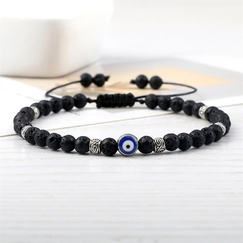 Evil Eye Lava Stone Bracelet 4mm - CHINA / Tiger Eye is backordered and will ship as soon as it is back in stock.