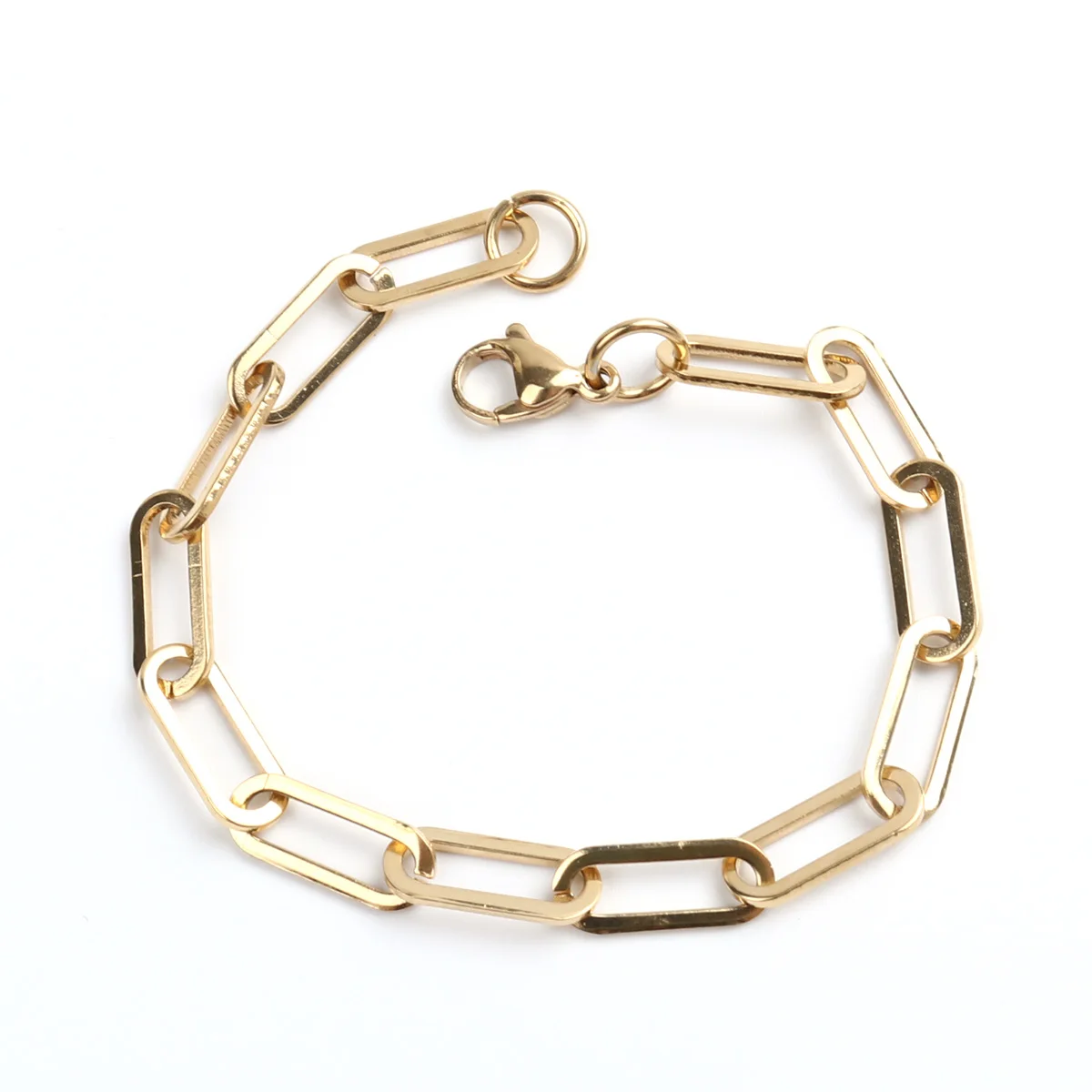 New Fashion 304 Stainless Steel Paperclip Chains Bracelets Metal Hand-Chain For Women Men Jewelry Gifts 18.5cm long, 1 Piece